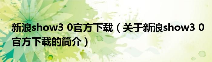 大家好,新浪show3 0官方下載,關(guān)于新浪show3 0官方下載的簡介很多人還不知道,現(xiàn)在讓我們一起來看看吧!