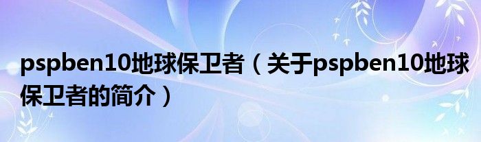本文關于pspben10地球保衛者的簡介就講解完畢,希望對大家有所幫助。