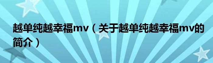 大家好,越單純越幸福mv,關于越單純越幸福mv的簡介很多人還不知道,現在讓我們一起來看看吧!