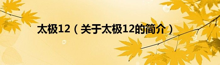大家好,太極12,關于太極12的簡介很多人還不知道,現在讓我們一起來看看吧!