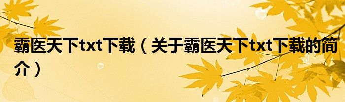 本文關于霸醫天下txt下載的簡介就講解完畢,希望對大家有所幫助。