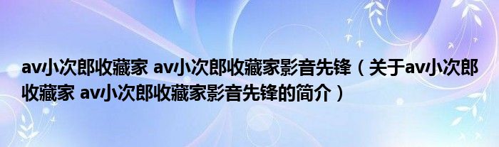 本文關于av小次郎收藏家 av小次郎收藏家影音先鋒的簡介就講解完畢,希望對大家有所幫助。