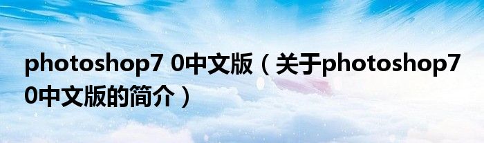 本文關于photoshop7 0中文版的簡介就講解完畢,希望對大家有所幫助。