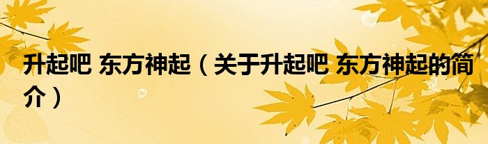 大家好,升起吧 東方神起,關于升起吧 東方神起的簡介很多人還不知道,現在讓我們一起來看看吧!
