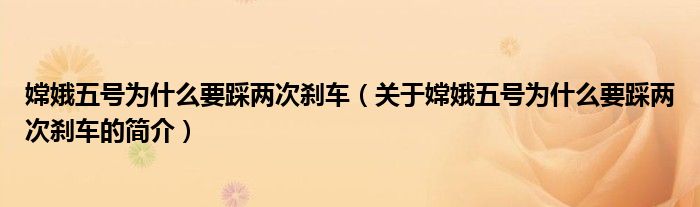 大家好,嫦娥五號(hào)為什么要踩兩次剎車,關(guān)于嫦娥五號(hào)為什么要踩兩次剎車的簡(jiǎn)介很多人還不知道,現(xiàn)在讓我們一起來(lái)看看吧!