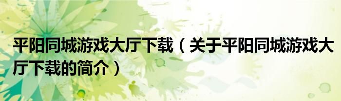 本文關于平陽同城游戲大廳下載的簡介就講解完畢,希望對大家有所幫助。