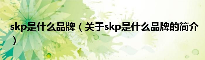 本文關于skp是什么品牌的簡介就講解完畢,希望對大家有所幫助。