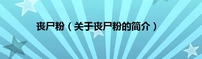 本文關(guān)于喪尸粉的簡(jiǎn)介就講解完畢,希望對(duì)大家有所幫助。
