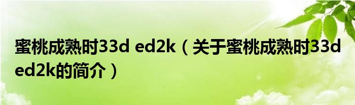 大家好,蜜桃成熟時33d ed2k,關于蜜桃成熟時33d ed2k的簡介很多人還不知道,現在讓我們一起來看看吧!