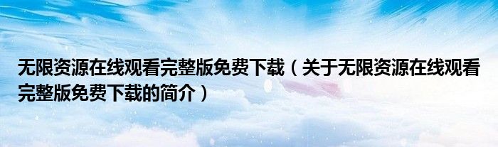 大家好,無限資源在線觀看完整版免費下載,關于無限資源在線觀看完整版免費下載的簡介很多人還不知道,現在讓我們一起來看看吧!