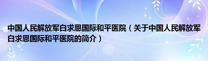 本文關于中國人民解放軍白求恩國際和平醫院的簡介就講解完畢,希望對大家有所幫助。