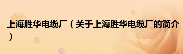 本文關于上海勝華電纜廠的簡介就講解完畢,希望對大家有所幫助。