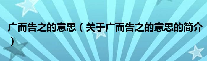 大家好,廣而告之的意思,關于廣而告之的意思的簡介很多人還不知道,現在讓我們一起來看看吧!
