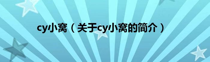 大家好,cy小窩,關(guān)于cy小窩的簡(jiǎn)介很多人還不知道,現(xiàn)在讓我們一起來(lái)看看吧!