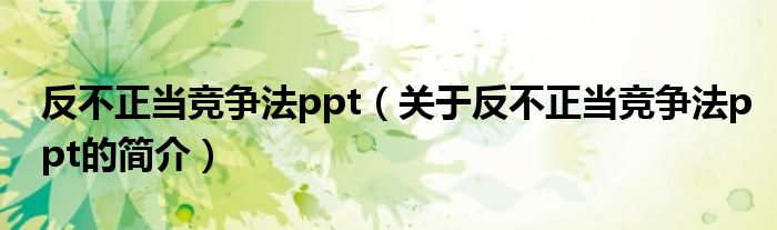 本文關于反不正當競爭法ppt的簡介就講解完畢,希望對大家有所幫助。