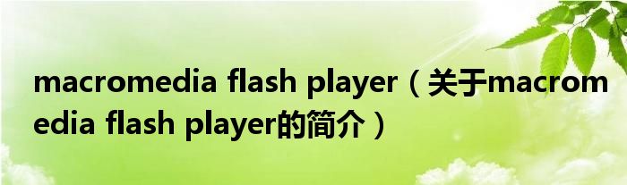 大家好,macromedia flash player,關于macromedia flash player的簡介很多人還不知道,現在讓我們一起來看看吧!