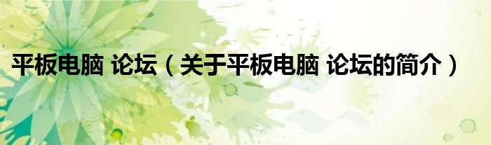 本文關于平板電腦 論壇的簡介就講解完畢,希望對大家有所幫助。