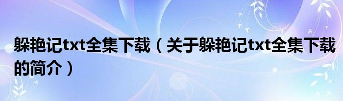 本文關(guān)于躲艷記txt全集下載的簡(jiǎn)介就講解完畢,希望對(duì)大家有所幫助。