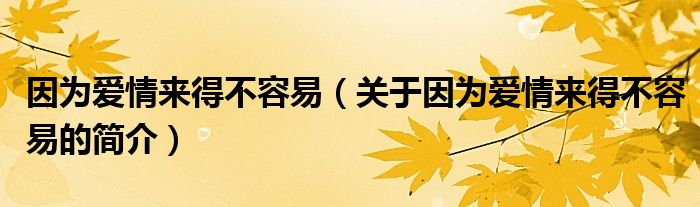 本文關于因為愛情來得不容易的簡介就講解完畢,希望對大家有所幫助。
