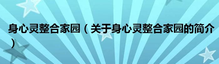 本文關于身心靈整合家園的簡介就講解完畢,希望對大家有所幫助。