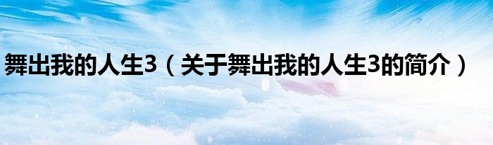 大家好,舞出我的人生3,關于舞出我的人生3的簡介很多人還不知道,現在讓我們一起來看看吧!