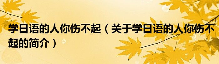 本文關于學日語的人你傷不起的簡介就講解完畢,希望對大家有所幫助。