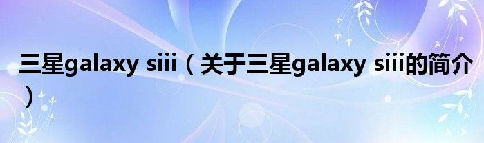 大家好,三星galaxy siii,關于三星galaxy siii的簡介很多人還不知道,現在讓我們一起來看看吧!