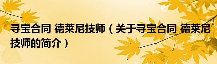 本文關(guān)于尋寶合同 德萊尼技師的簡介就講解完畢,希望對大家有所幫助。