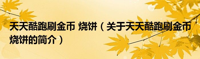 本文關于天天酷跑刷金幣 燒餅的簡介就講解完畢,希望對大家有所幫助。