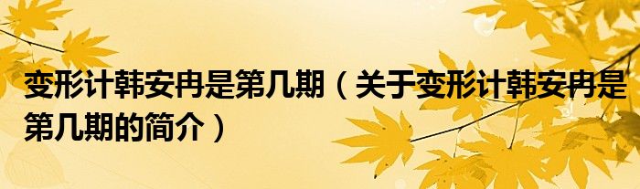本文關于變形計韓安冉是第幾期的簡介就講解完畢,希望對大家有所幫助。