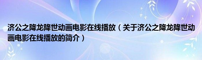 本文關于濟公之降龍降世動畫電影在線播放的簡介就講解完畢,希望對大家有所幫助。