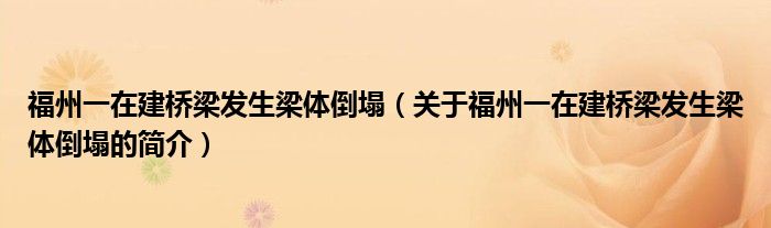 本文關于福州一在建橋梁發生梁體倒塌的簡介就講解完畢,希望對大家有所幫助。
