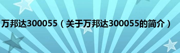 本文關于萬邦達300055的簡介就講解完畢,希望對大家有所幫助。