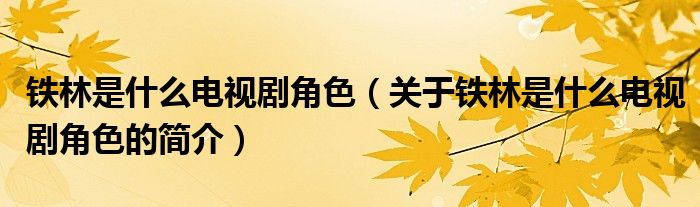 本文關于鐵林是什么電視劇角色的簡介就講解完畢,希望對大家有所幫助。