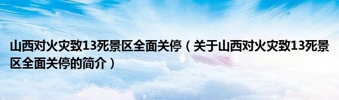 本文關于山西對火災致13死景區全面關停的簡介就講解完畢,希望對大家有所幫助。