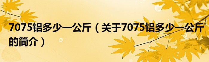 本文關于7075鋁多少一公斤的簡介就講解完畢,希望對大家有所幫助。