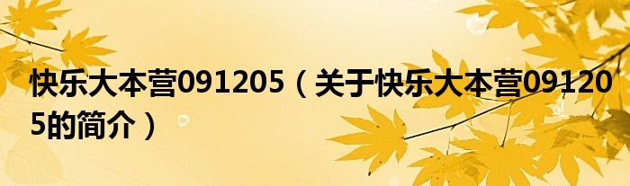 本文關于快樂大本營091205的簡介就講解完畢,希望對大家有所幫助。