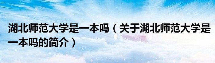 大家好,湖北師范大學是一本嗎,關于湖北師范大學是一本嗎的簡介很多人還不知道,現在讓我們一起來看看吧!
