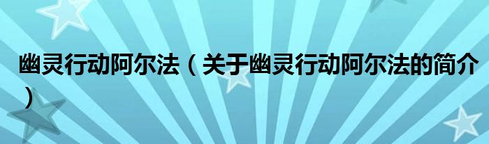 大家好,幽靈行動阿爾法,關于幽靈行動阿爾法的簡介很多人還不知道,現在讓我們一起來看看吧!