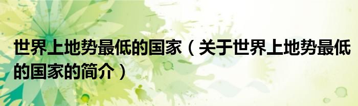 大家好,世界上地勢最低的國家,關于世界上地勢最低的國家的簡介很多人還不知道,現在讓我們一起來看看吧!