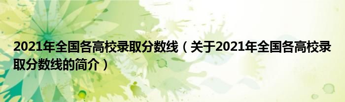 本文關(guān)于2021年全國(guó)各高校錄取分?jǐn)?shù)線的簡(jiǎn)介就講解完畢,希望對(duì)大家有所幫助。