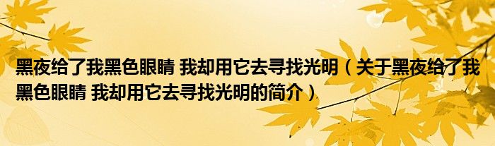 本文關于黑夜給了我黑色眼睛 我卻用它去尋找光明的簡介就講解完畢,希望對大家有所幫助。