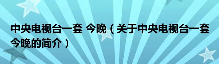 本文關(guān)于中央電視臺(tái)一套 今晚的簡(jiǎn)介就講解完畢,希望對(duì)大家有所幫助。
