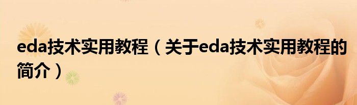 大家好,eda技術實用教程,關于eda技術實用教程的簡介很多人還不知道,現在讓我們一起來看看吧!