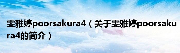 本文關(guān)于雯雅婷poorsakura4的簡(jiǎn)介就講解完畢,希望對(duì)大家有所幫助。