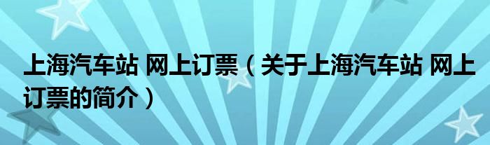 本文關于上海汽車站 網上訂票的簡介就講解完畢,希望對大家有所幫助。