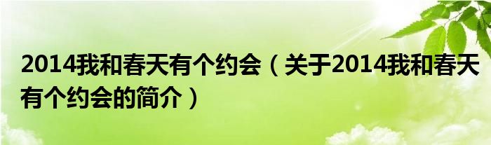 本文關于2014我和春天有個約會的簡介就講解完畢,希望對大家有所幫助。