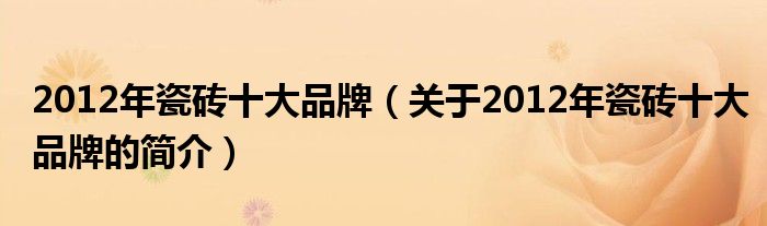 本文關(guān)于2012年瓷磚十大品牌的簡(jiǎn)介就講解完畢,希望對(duì)大家有所幫助。