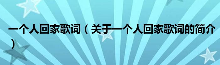 本文關于一個人回家歌詞的簡介就講解完畢,希望對大家有所幫助。