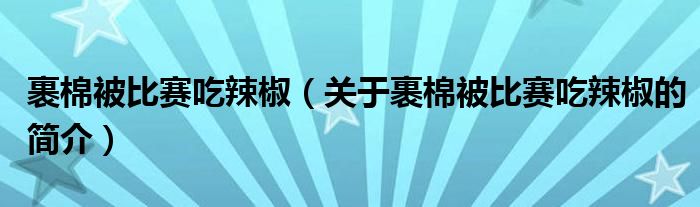 本文關于裹棉被比賽吃辣椒的簡介就講解完畢,希望對大家有所幫助。